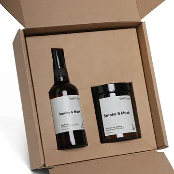 The Duo Gift set includes one of our 170ml soy wax candles [35 - 40 hours burning time] and one of our 100ml home mists.